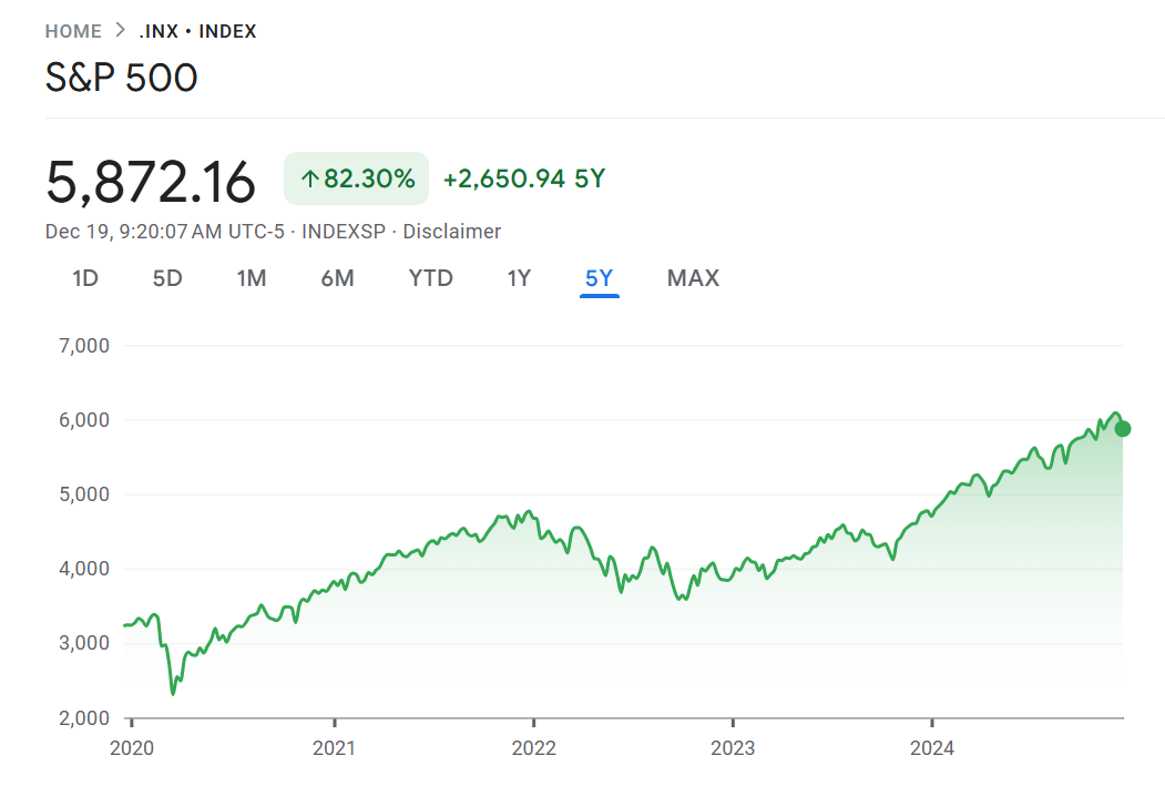 Get back up again: Futures are bouncing this morning after a brutal sell-off yesterday. The Federal Reserve cut interest rates as expected but signaled there would be fewer rate cuts in 2025 because the economy is strong and inflation is higher. The S&P 500 put in its worst Fed day sell-off ever according to Bespoke Investment Group, falling nearly 3%. The Dow Jones Industrial Average fell for a 10th straight session. The TSX plunged more than 2%. If monetary policy uncertainty wasn’t enough, there is a chance of a US government shutdown. President-elect Donald Trump was critical of a plan that would fund the government until March 14. Republicans quickly regrouped and scrapped the plan without a new one in place. Earlier this morning we had the Bank of England and Bank of Japan rate decisions, both held rates. However, pressure seems to be growing on the BoE and it is likely they will cut rates next year. This meeting was a 6-3 vote, with three members saying it was time for rate cuts. As for the big sell-off in markets, can you spot it on this chart?