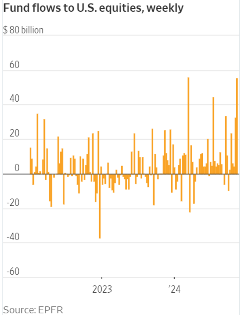 Fund flows into US stocks hit second highest level on record ($56 billion)
