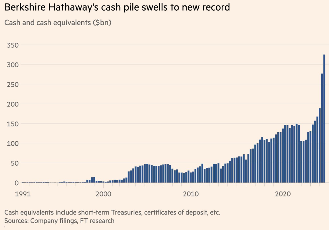 Quite a rainy day fund: Warren Buffett’s cash pile has now reached a record $325.2 billion and he was also a net seller of stocks. Berkshire also trimmed its stake in Apple once again. This comes as the S&P 500 has been on a tremendous ride. “In the 12 months ending October,” says Bespoke Investment Group, “the S&P 500’s total return of 38% ranks 92nd percentile relative to all other periods and is more than triple the long-term average of 11.9%.” Some fear that Buffett’s cash is a signal he thinks a crash is coming. But others say the cash pile isn’t a tell for the markets. “Last time Warren Buffett had this high % of cash in his Berkshire portfolio,” JC Parets of All Star Charts wrote, “The stock market immediately went on to have the greatest 52-weeks in American history. The time before that, the bull market in stocks lasted for 3 more years.”