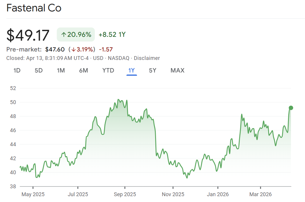 Fast and loose: There is no better pulse in the industrial economy than Fastenal. The nuts and bolts maker in nearly every industrial application reported slightly better earnings than expected but the stock is under pressure margins were slightly under pressure. Under the hood, demand for its goods remained robust. Sales grew 12% – the fastest pace of quarterly growth since Q3 2022. The rub is that costs are increasing faster than prices, hence the gross margin disappointment. The stock had also been rallying into results making it ripe for profit taking in a risk-off market.