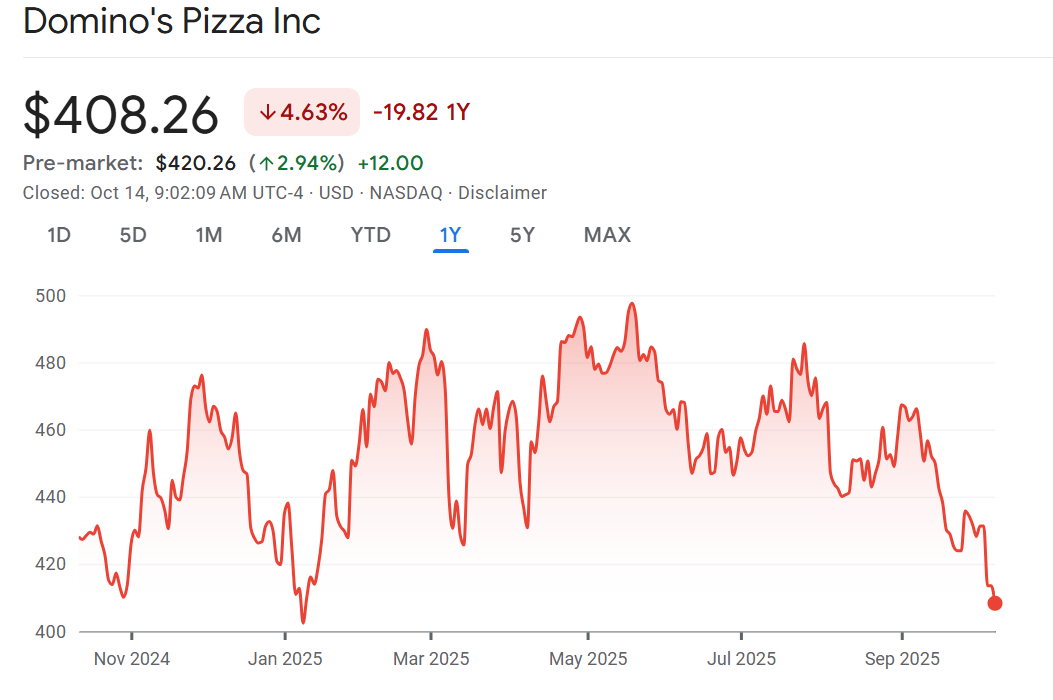 Double stuffed: Shares of Domino’s are rising in the pre-market after profit and sales beat expectations. Comparable same-store sales rose 5.2% vs the expected gain of 4.2%. The stock has been a disappointment trading at a 10-month low. That might be the reason it caught the eye of Warren Buffett. Berkshire is now the second largest shareholder revealing their stake at the end of 2024. The firm bought more in the first quarter of this year. Having said that, it is a small part of the Berkshire portfolio representing just 0.4% according to data from Bloomberg.