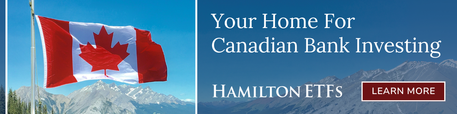 Canadians love their bank stocks — and for good reason. They’ve delivered decades of strong returns and dividend growth. But what’s the easiest, low-cost way to own all six of the Big Banks without picking favourites? Enter Hamilton ETFs. Learn more about the Hamilton Canadian Bank Equal Weight Index ETF (HEB) — which comes with no management fee until 2026 — and the Hamilton Enhanced Canadian Bank ETF (HCAL), which uses modest 25% leverage to boost exposure and dividend yield.