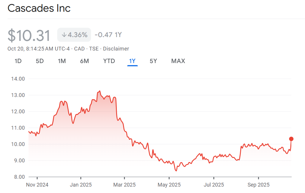 Anotha one: Cascades is getting a second upgrade to buy in less than a week. RBC is upgrading the stock and slapping a street-high $13/share price target. The stock has been a laggard, down 13% so far in 2025 due to weak demand for paper and packaging products. RBC says the company is gaining momentum and sees the ramping up of their facility in Virginia as a catalyst. In addition, the analyst says a a significant profitability improvement program underway. “We see the potential for attractive upside as these themes continue to play out (our 2026 EBITDA estimate is above consensus) and be recognized by investors, and are upgrading our rating to Outperform (from Sector Perform),” wrote Matthew McKellar.