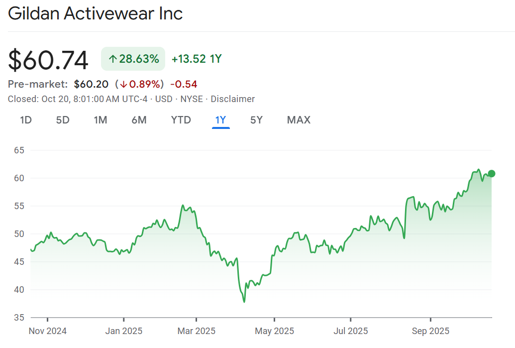 Pantsed: Gildan is catching a downgrde from Citi after a 30% gain this year. The plain clothing maker announced a deal to buy Hanesbrands in August for $4.5 billion, the stock is up 20% since then. “We believe the market is now pricing in a successful close to the deal, seamless integration, and synergies that are at least as much as what mgmt indicated ($200MM),” wrote Citi’s Paul Lejuez, “…While this still implies some upside versus current levels, we view the risk/reward as more balanced, justifying a Neutral rating.”