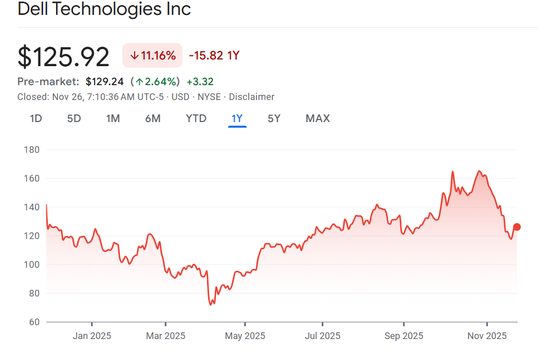 Compute: Shares of Dell are up 2% as investors parse through a mixed set of results that featured better profit and a boosted sales outlook offset by weaker sales in the quarter and lower than expected implied margins. Dell is boosting its sales forecast expecting AI server shipments will be higher than previously thought. While investors cheer the demand, the implied margins from that business are a little lower than expected. The cost of memory chips has skyrocketed and investors worry about how that will erode margins at Dell. However, in the quarter reported the company’s gross margins were a little higher than expected. “While memory prices are likely to remain an overhang, we expect Dell to outperform (original equipment making) peers based on their execution and maintain our Buy rating,” wrote Asiya Merchant of Citi on the results. Meanwhile HP Inc is falling about 4% after announcing job cuts as its profit outlook fell short of expectations. The PC and printer maker said it will be cutting between 4,000 and 6,000 jobs and replace those people with AI tools (and so it begins). Profit in the quarte ralso missed because of the rising cost of memory chips.