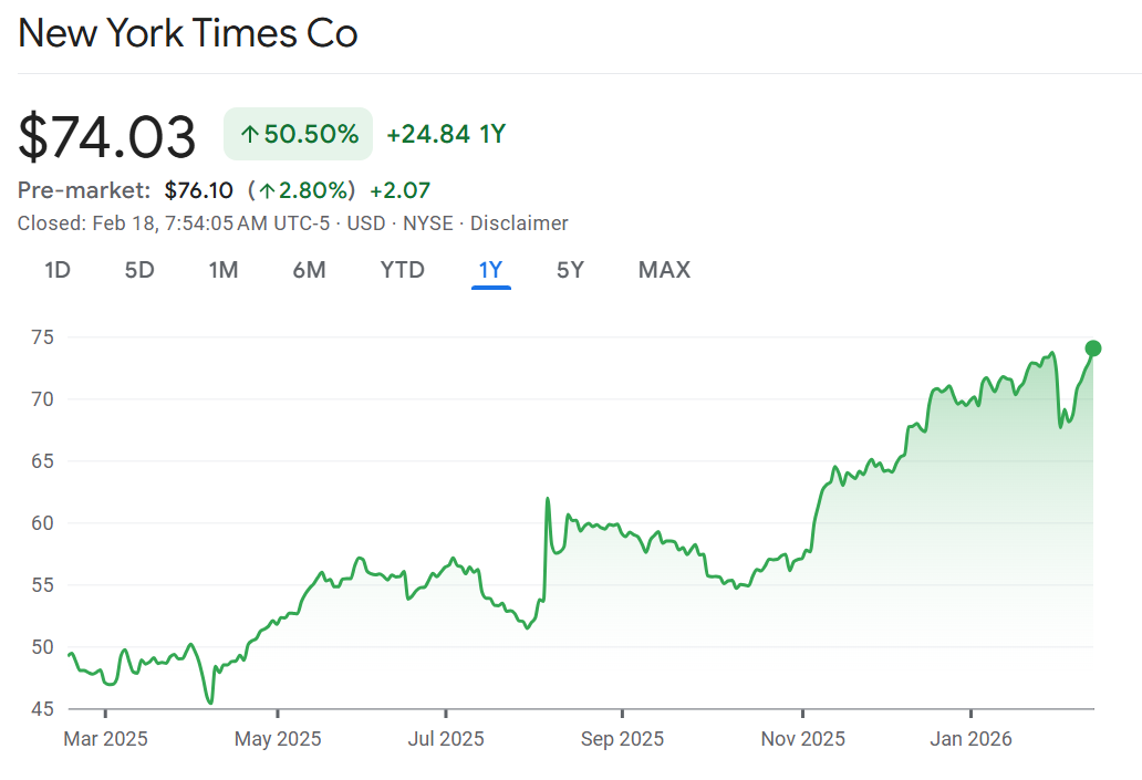 What the 13F: Selling tech stocks to by a newspaper company seems counterintuitive for this day and age, but that is exactly what Warren Buffett is doing in his last moves as CEO. Berkshire Hathaway revealed it has purchased a new stake in New York Times (+3% in the pre-market) while continuing to trim its Apple position and reducing its Amazon stake by 75%. To be clear, Amazon was never a big position, Apple remains a top holding, and the New York Times could disappear tomorrow and it wouldn’t make a dent in the portfolio. But this isn’t your grandparents Times, it has transformed into a digital company with the stock at a near record high. Other notable buys in the 13F filings include Soros Fund buying a new position Canada’s New Gold and Brad Gertsner’s Altimeter Capital revealing a new position in Shopify.