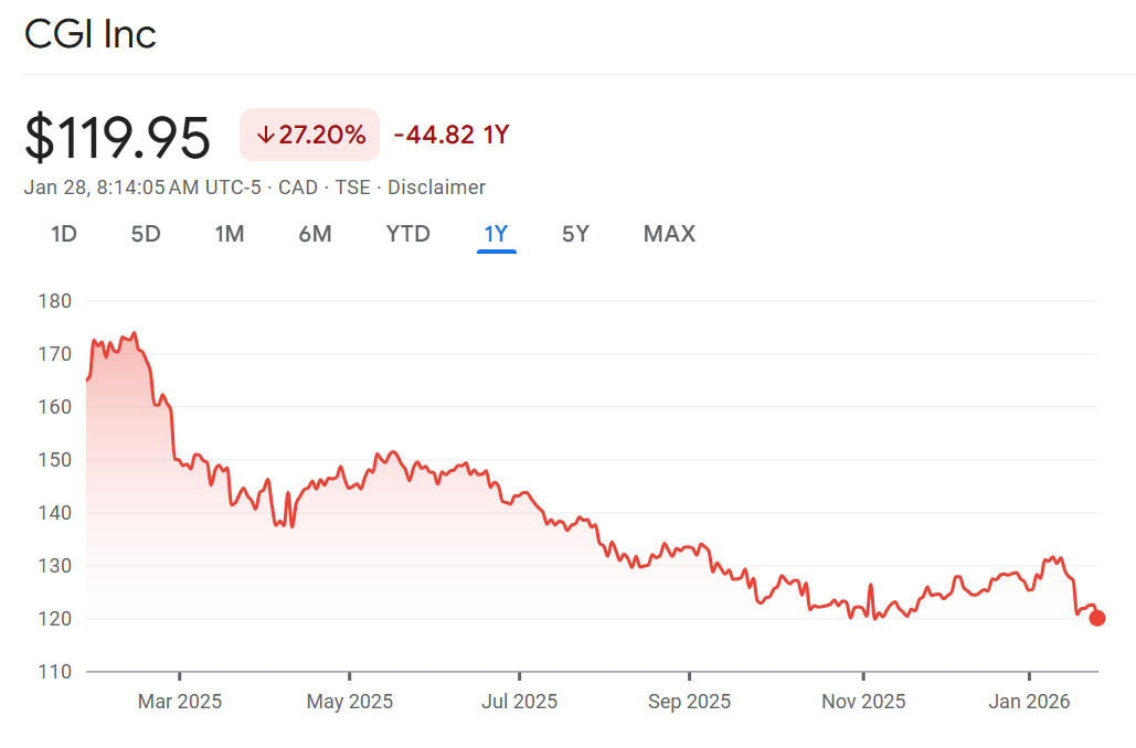 Shutdown woes: CGI Group’s organic growth took a hit thanks to the US government shutdown while its quarterly results came in line with expectations. US Federal revenue for the software seller dropped 13% from last year because of the 43-day shutdown. “…With the US government potentially facing another shutdown by the end of the week, the outlook remains uncertain,” wrote Desjardin’s Jerome Dubreuil, “Depending on the duration, another shutdown could limit CGI’s ability to meaningfully accelerate organic growth next quarter.” Having said that, Dubreuil notes that free cash flow generation was robust and they did their biggest buyback since 2021. CGI Group is down 27% over the past year. “In our view, these results should be taken in the context of CGI’s valuation, which sits near a 10-year low (except for a few days at the beginning of the pandemic),” wrote Dubreuil.