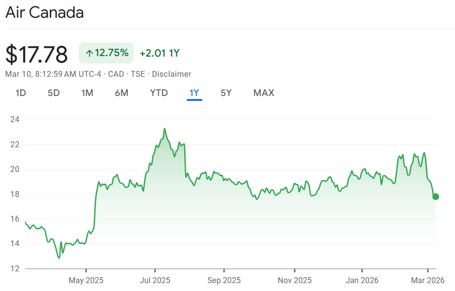 Notable calls: Air Canada is being downgraded at Scotia this morning on fuel price uncertainty. Unsurprisingly, the war in Iran means fuel consumers like airlines could be pinched. Higher fuel prices “could negatively impact margins and maintain pressure on the stock at least in the short term,” wrote Konark Gupta of Scotia. He warns that Air Canada could be forced to reduce or suspend its financial forecasts altogether if energy prices remain this elevated. Veritas is upgrading Cenovus to buy and downgrading Canadian Natural Resources to reduce. Higher crude prices and impressive progress integrating MEG Energy are reasons Veritas is now bullish on Cenovus. Meanwhile, much of the rally in crude is already reflected in Canadian Natural Resources, argues the analyst, and he is moving to a reduce stance given the stock has outperformed. Rivian is getting upgraded at TD Cowen ahead of the launch of its midsize SUV. The analyst believes there is upside to the demand for this vehicle. CrowdStrike is higher in the pre-market after Morgan Stanley upgraded the stock to buy. While the analyst notes valuation is expensive, they believe the cyber security company is a “durable platform winner from favourable AI positioning.”