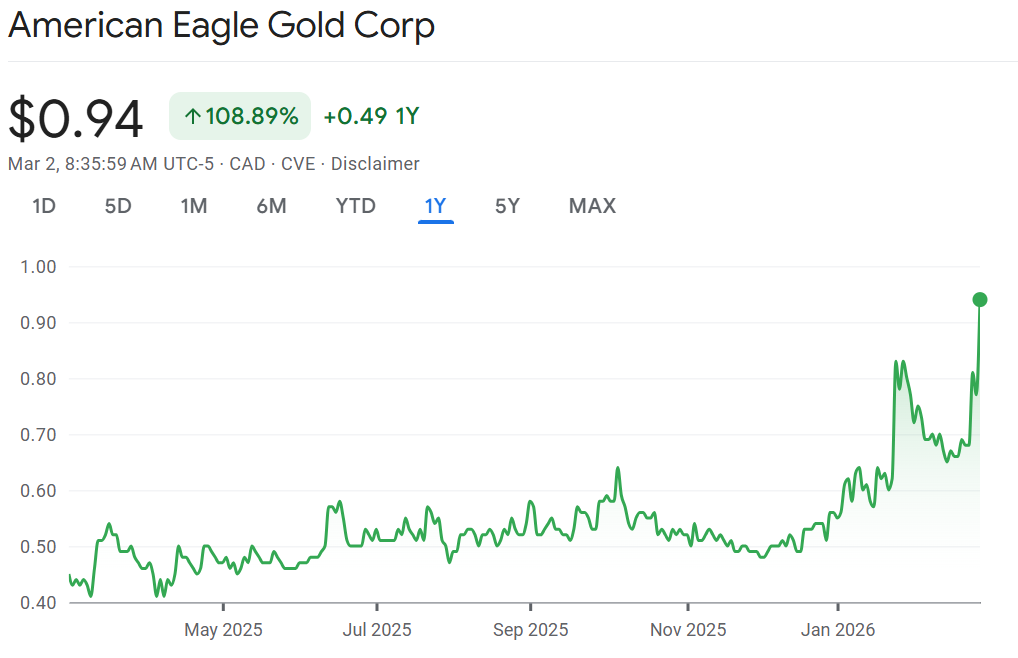 Sprott watch: Watch shares of American Eagle Gold after the junior minor announced a $23 million investment from Canadian mining billionaire Eric Sprott. Normally a company with $163 million market cap doesn’t get a mention in the newsletter, but an investment of this magnitude warrants some attention. Despite the name of the company, this is a play for copper which is a rare type of investment for Sprott. “NAK has truly caught my attention,” said Sprott in the press release referring to the gold-copper play in BC, “I believe the grade and length of the intervals are exceptional, and the gold grade is the icing on the cake.” Teck Resources is another major backer of the company.