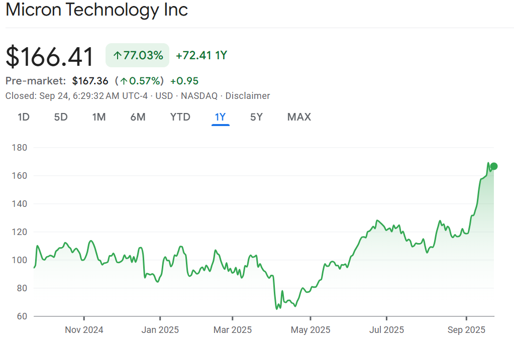 Baked in: Micron is flat despite better than expected earnings and a robust forecast driven by AI demand. Keep in mind the memory chipmaker has been on a tear and is trading near a record. Under the hood, the results are impressive. Total sales grew 46% while profit tripled from last year. Micron makes a memory chip that feeds data to AI accelerators at extremely fast speeds. Memory chips were primarily used in PCs and mobile phones and Micron’s fortunes rose and fell with demand of those products. But thanks to the billions being poured into AI data centres, sales in that category now make up more than half of Micron’s revenue. Stifel says this is a structural shift that bodes well for their gross margins. “We believe these disclosures will help investors better appreciate the structural shift in Micron’s revenue composition (majority datacenter now, not consumer),” wrote Brian Chin of Stifel.