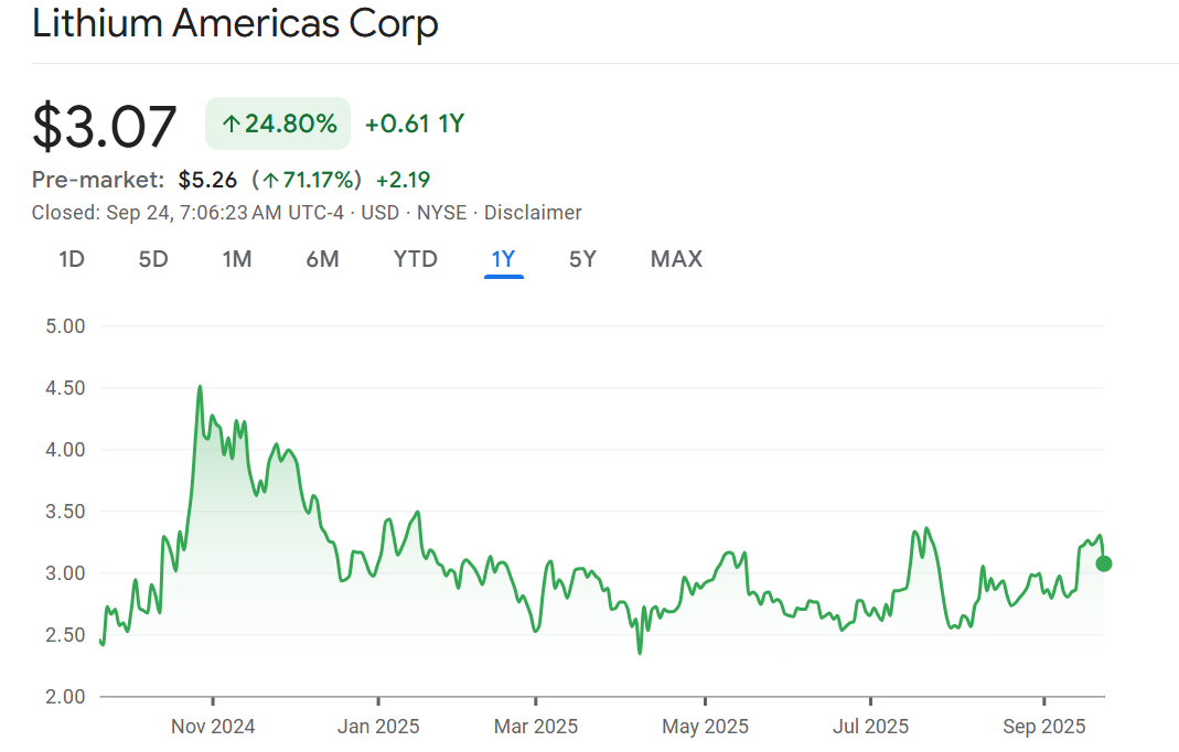Uncle Sam’s portfolio: Shares of Lithium Americas are soaring nearly 70% in the pre-market on reports the US government is seeking an equity stake. You read that right. Lithium Americas is a Vancouver-based lithium miner that has one of the largest lithium deposits in the United States (Thacker Pass in Nevada). Bloomberg says the equity stake is part of renegotiations with the Department of Energy on its $2.3 billion. “We believe a gov’t stake would lend credence to project completion and expansion to multiple phases with perhaps enhanced economic,” wrote TD Cowen’s David Deckelbaum