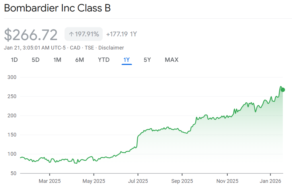 Ring the register: Bombardier is getting hit with a third downgrade in less than a week. This morning Scotiabank downgraded to stock saying the decision is “solely on valuation.” Bombardier has tripled over the past year and is up 10 fold in the last five years. Not your father’s Bombardier. Scotia’s Konark Gupta argues that the multiple has doubled over the past year and has now largely closed the gap with its closest peer General Dynamics. To be honest though, most of the downgrade is pretty glowing about the company, its turnaround and its future prospects.