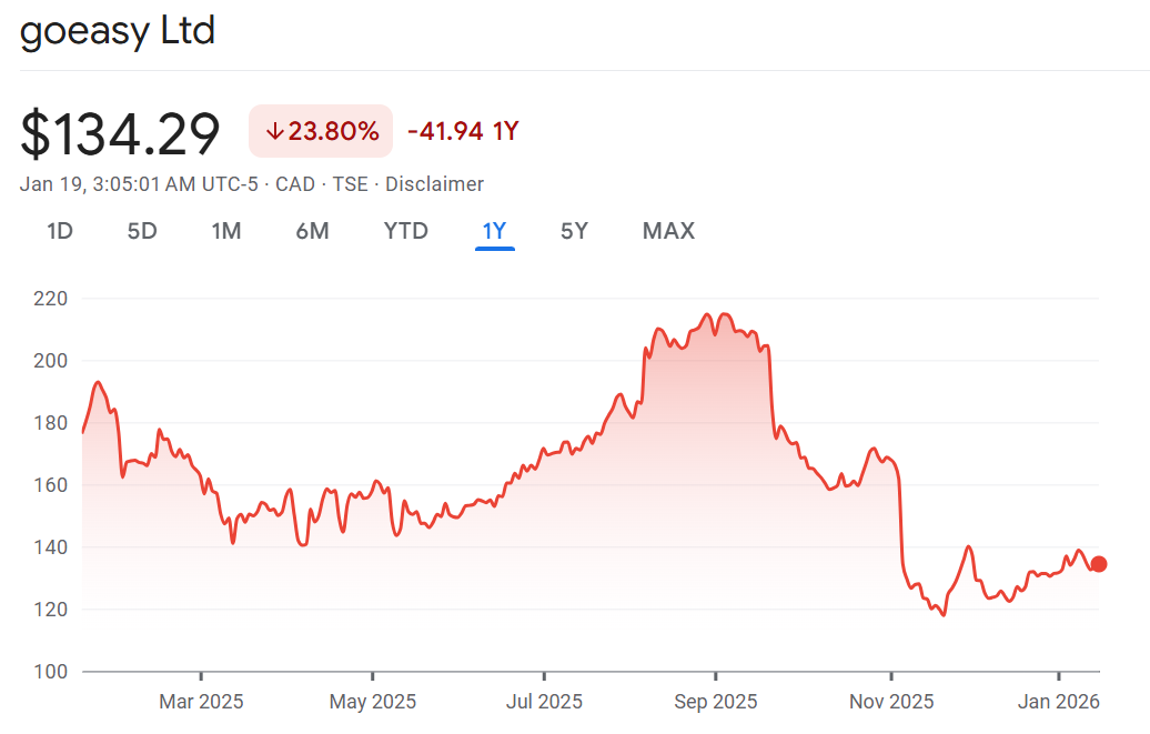 Notable Calls: goeasy is being downgraded at TD Cowen to hold. The stock has been anything but easy to own (I’m a shareholder) and TD argues it is not going to get better. “We believe consensus is too high,” wrote TD’s Graham Ryding, “goeasy’s valuation has historically been highly correlated with earnings growth expectations. Earnings growth has been soft in 2025, and we believe it could remain challenged in 2026.”