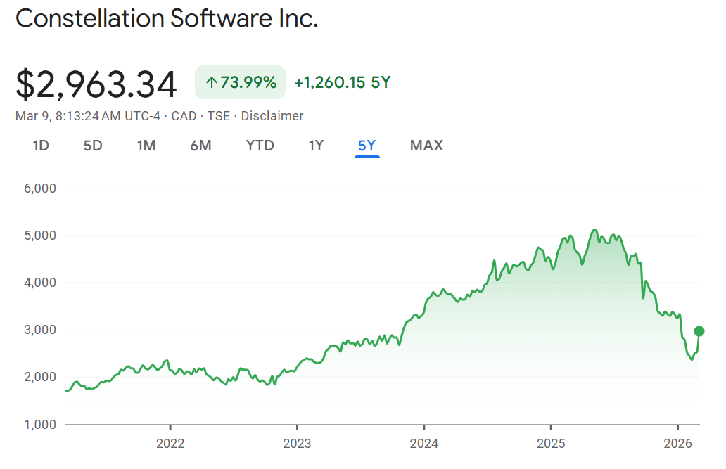 Answer is in the stars: Constellation Software reported mixed results so its a good thing they are hosting a conference call with investors and analysts for the first time since 2018. Profit missed expectations and dropped from last year on a one-time non-cash charge related to rising value of an investment. Constellation said it won’t face this kind of charge again. So investors may look through this to revenue which increased 18% – more than the 17% expected. The results come as investors are nervous that AI is going to start to lower sales growth. Shares are down 43% from their peak. The fact that long-time CEO and founder Mark Leonard isn’t at the helm is also compounding these concerns. Its against this backdrop the company is holding its first conference call since 2018. Below are key takeaways from the call: