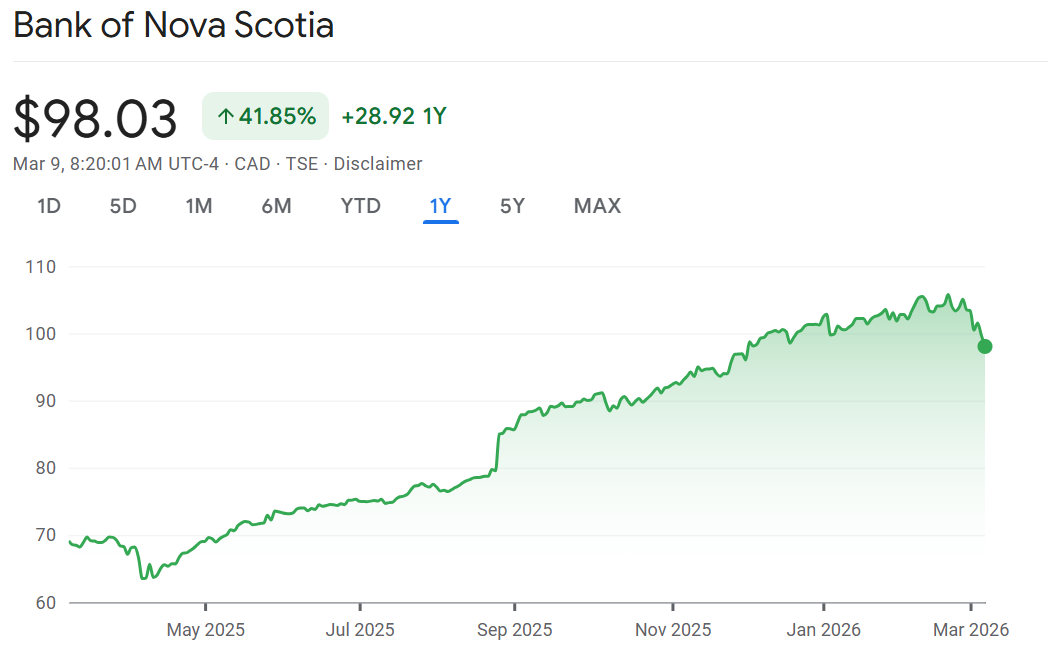 Notable call: Bank of Nova Scotia is getting downgraded at Canaccord. This is the second downgrade in a week. “Last summer, we saw a significant opportunity for a BNS re-rate with the bank trading at a ~2.0x P/E discount to the group, far below its historical range,” wrote Canaccord’s Matthew Lee in the downgrade this morning, “While we previously believed that BNS would close the P/E gap to 5%, given the firm’s relatively modest ROE expectations, we now expect the discount to remain unchanged at ~10%.”