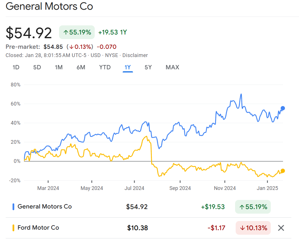 Vroom Vroom: General Motors is taking a $5 billion dollar charge on its struggling business in China and the automaker swung to a loss in the quarter. It’s decision to abandon its robotaxi ambitions was a another $500 million hit to the bottom line. Investors saw this coming, however, with the company pre-announcing the charge a month ago and the stock is flat in the pre-market. On the positive side, the automaker is saying 2025 will be a better year with profits expected to grow from 2024. Despite these challenges, investors like the restructuring efforts at General Motors and the stock has outperformed in an otherwise bleak auto market.