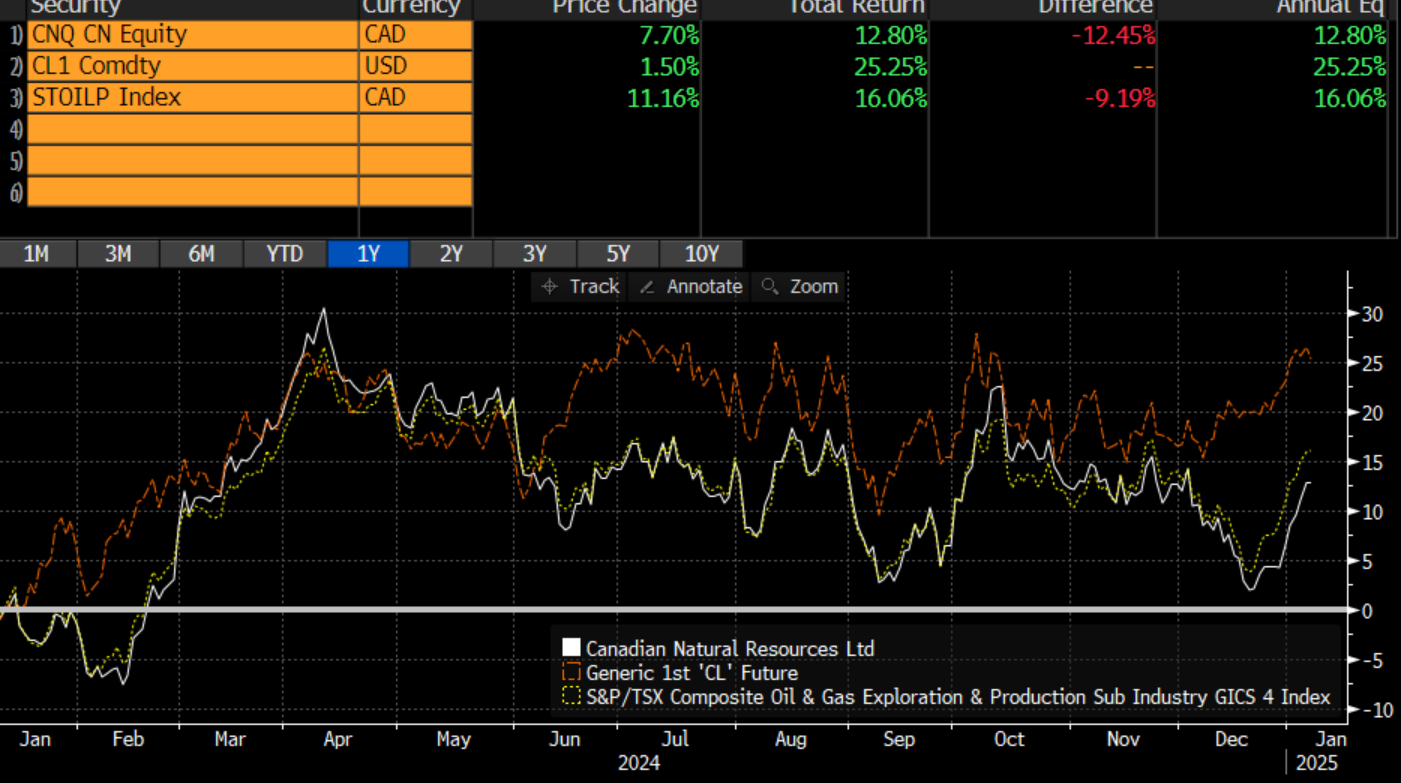 Budget season: Canadian Natural Resources put out its budget this morning which featured few surprises. It plans to boost production by 12% and capital spending by 13.5%. It is expecting better demand for Canadian crude in the US and international markets. Interesting, considering the political backdrop between Canada and the US right now that could put the energy sector in the crosshairs. However, most analyst notes this morning are not fretting over this war of words. “This budget underscores why we like CNQ,” wrote Menno Hulshof of TD Cowen, “Significant capital flexibility given best-in-class portfolio diversity and infrastructure dominance, with this dominance driving material cost structure advantages.” After hitting an all-time high in April, the stock has struggled to reclaim it. This has been due to a combination of volatile oil prices and a rotation into other names like Suncor. With recent rally in crude, oil producers are up 11% from the December low.