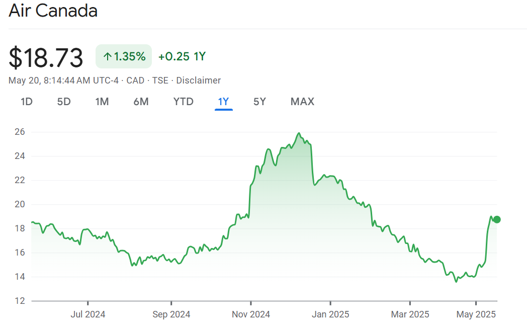 Notable call: Air Canada is got upgraded at Jefferies to hold. While not a buy rating, it does suggest the worst may be over for the embattled airline stock which is down 15% so far this year. The analyst says the company did well navigating the “macro noise echoing across the border.” The price target goes to $18/share from $12/share which is where the stock is right now. Her sell call wasn’t perfectly timed. She downgraded from hold to sell in the beginning of April. Since then, Air Canada shares have recovered nearly 30% from the low.