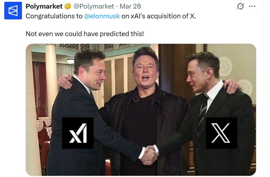 Self dealing: X (formerly known has Twitter) has been sold by Elon Musk to Elon Musk. The Tesla founder and CEO has merged his artificial intelligence company xAI with X in a deal that values his AI company at $80 billion and Twitter at $33 billion. Recall, Musk bought Twitter in 2022 for $45 billion. “xAI and X’s futures are intertwined,” wrote Musk in a post on X, “Today, we officially take the step to combine the data, models, compute, distribution and talent.” It is a win for investors in X who have had to writedown their investment after Musk’s purchase. Now they get to participate in the AI upside. The last funding round for xAI valued the company at around $50 billion just a few months ago.