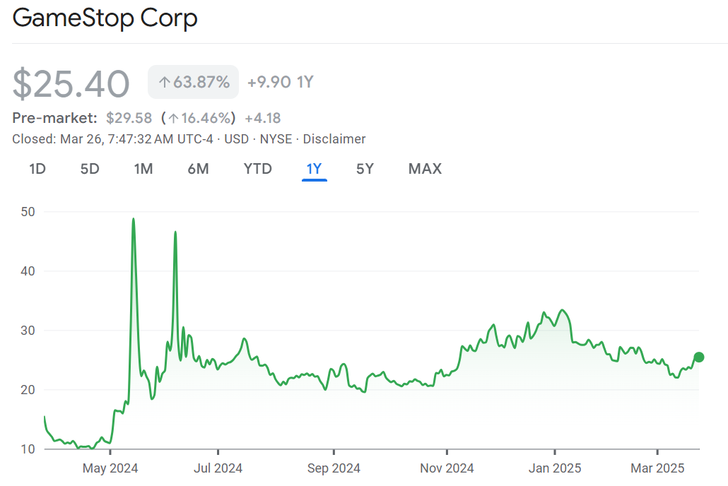 Game.Stop: Shares of GameStop are popping 16% despite a bigger than expected drop in sales. Instead of focusing on the nearly 30% drop in sales, investors are latching on to the announcement that the company will be buying Bitcoin and adding it to its treasury. So that’s where we are in the cycle.