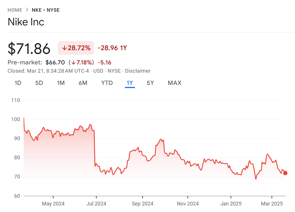 Win…when? Shares of Nike are down 7% despite progress in its “Win Now” turnaround strategy. Earnings soared past expectations ($0.54/share vs $0.32/share expected) and sales didn’t fall as much as feared (-7% vs -11% expected). However, sales still fell in every major market and the company warned that sales would fall more than expected next quarter. Nike also warned margins would be hit by tariffs on Chinese and Mexican made goods. China produces about 18% of Nike-branded footwear, according to Bloomberg. The long story short for investors is that the company is progressing on their turnaround but this quarter showed it’s going to be an uphill battle. “(It is) a good start to a two year journey,” wrote Randal Konik of Jefferies.