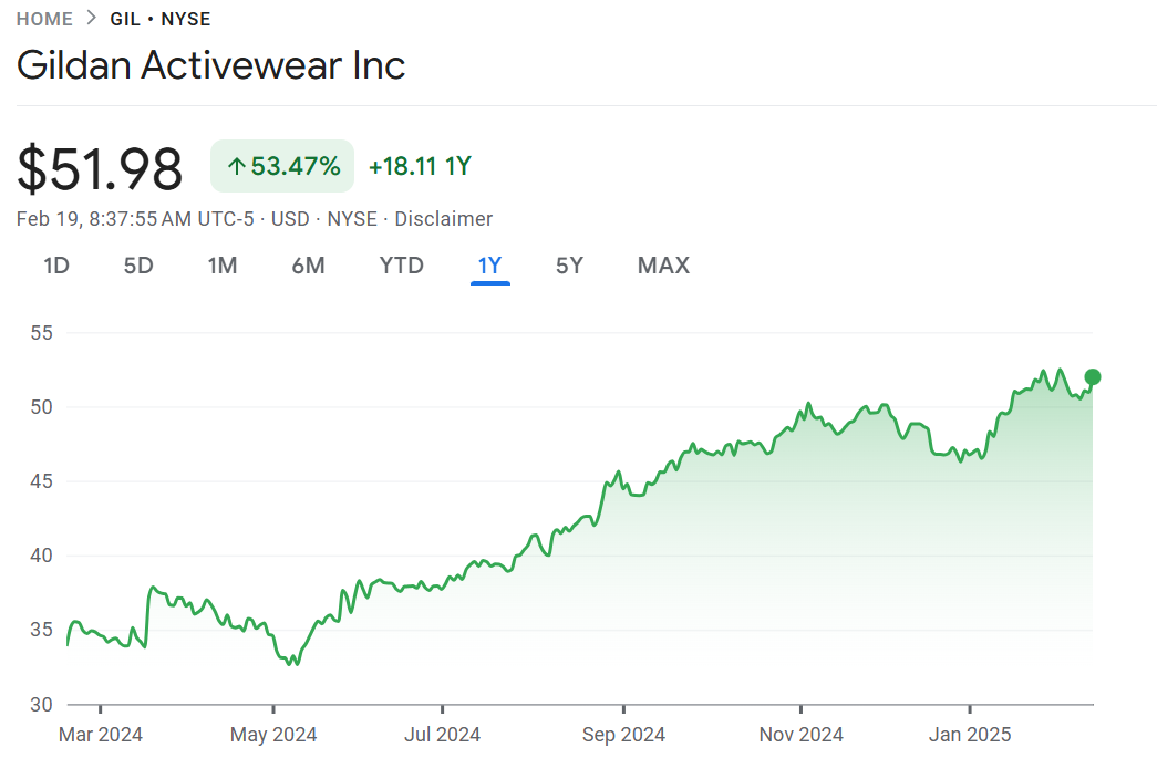 Shirts off: Keep on eye on shares of plain t-shirt maker Gildan Activewear after it beat profit expectations and boosted its dividend 10%. The outlook for profit also points to a rosy outlook. “The high-point of the EPS guidance represents a potential EPS increase of 19% Y/Y, which would result in the fastest growth rate of the last three years,” wrote Martin Landry at Stifel. The company also announced some management changes including a new CFO. “We believe the shares will react well to these results…” wrote Landry. Gildan is trading around an all-time high and is up nearly 40% since its founder/CEO Glenn Chamandy was reinstated after a down-to-the wire activist battle. Evan Mancer of Cardinal Capital Management was active on that file calling for Chamandy to be reinstated after he was fired at the end of 2023. Despite the rally, he still sees more upside on the stock.
