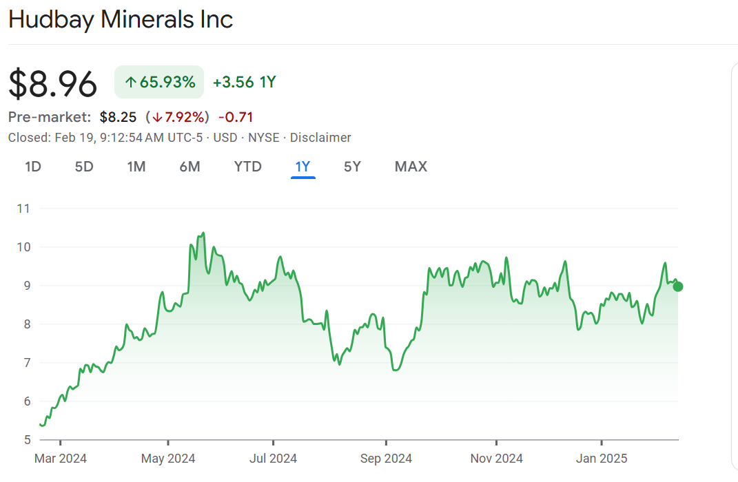 Soft rock: Shares of Hudbay Minerals are down 8% in the pre-market after the miner’s production forecast came in softer than expected. While earnings beat expectations, analysts note that the forecasted production for copper was lower than expected while costs are higher than expected. “Despite solid Q4 results, we expect shares will react negatively to the weaker 2025 guide,” wrote TD’s Craig Hutchison.