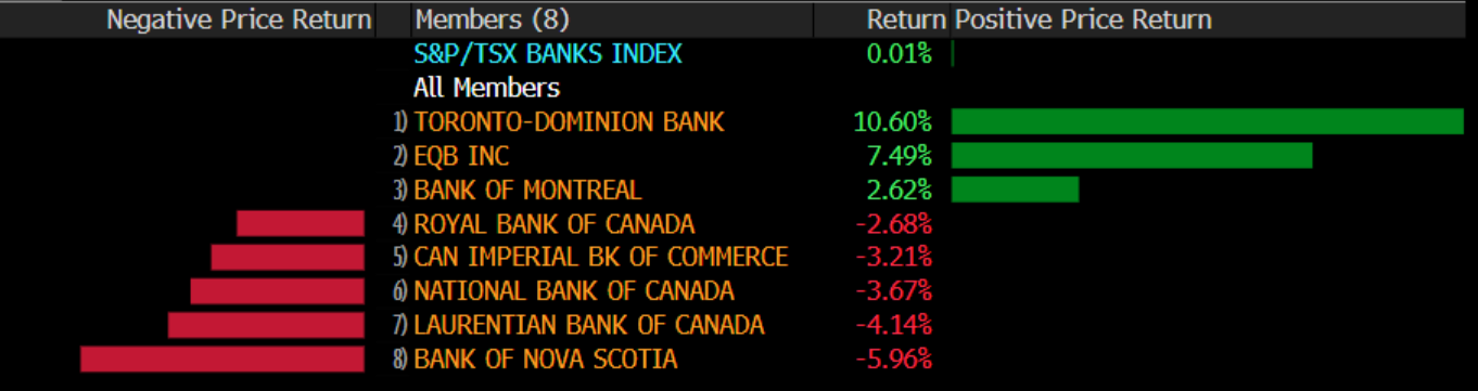 Scotia downgraded: CIBC is downgrading Bank of Nova Scotia ahead of bank earnings which kick off next week. The downgrade comes just 6 months after CIBC’s Paul Holden upgraded the stock to buy. “We generally prefer not to change ratings this quickly (upgraded September 2024), but the macro environment has changed significantly,” he warned in a note to clients. In particular, he is worried that Scotia would be more significantly affected by tariffs than peers given its exposure in Mexico. “We could return to a more positive call if Mexico and Canada are able to negotiate relatively harmless tariffs. Until that happens, we think it will be hard for the stock to be a relative outperformer.” Indeed, it is the worst performing bank stock so far in 2025.