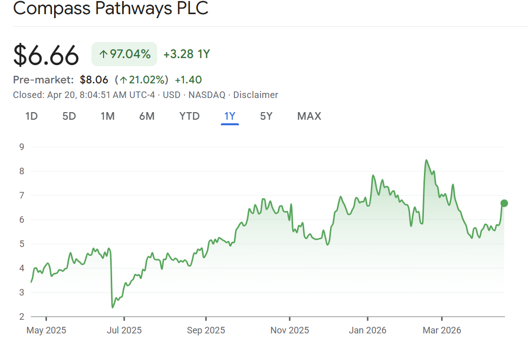 New high: Shares of psychedelic drug makers are surging in the pre-market after US President Donald Trump signed an executive order to increase access for patients with serious mental illness. Shares of Compass Pathways (+25%), AtaiBeckley (+26%), Definium Theraputics (+14%) and GH Research (+18%) are all pumping on the news with smaller caps like Psyence surging 78% in the pre-market. None of these companies have generated meaningful, if any, revenue yet as most are still going through clinical trials. “While the administration won’t be immediately re-scheduling the drug, we think this drafting points to continuing acceptance from regulatory authorities for the use of psychedelics in the treatment of various psychiatric indications,” wrote RBC’s Leonid Timashev before the Executive Order.