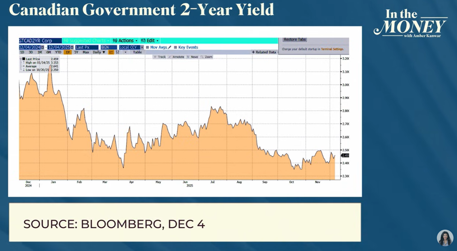 1. Long Canada 2-Year Government Notes: Expect Canadian 2-year yields to fall, prices to rise