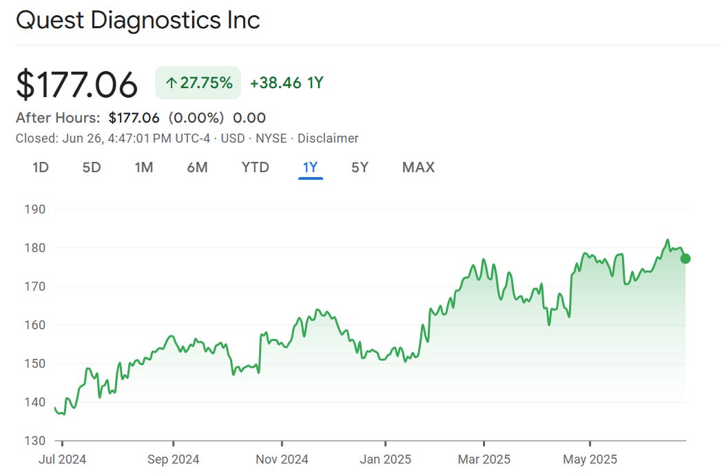 - Healthcare Trend: Rising healthcare service usage directly benefits Quest’s volumes.