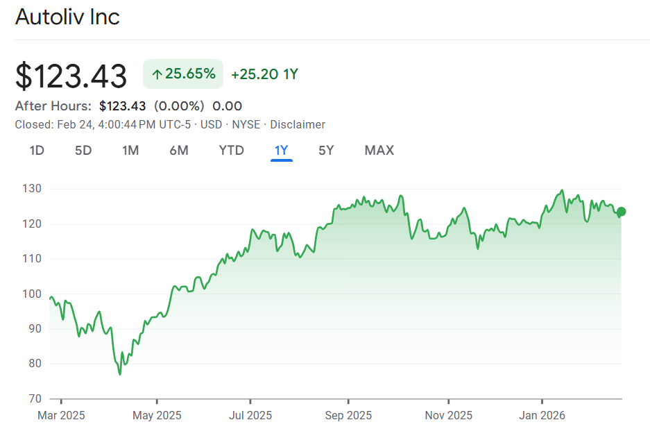 • Autoliv (ALV) – World leader in automotive safety systems (seatbelts, airbags, child restraints)