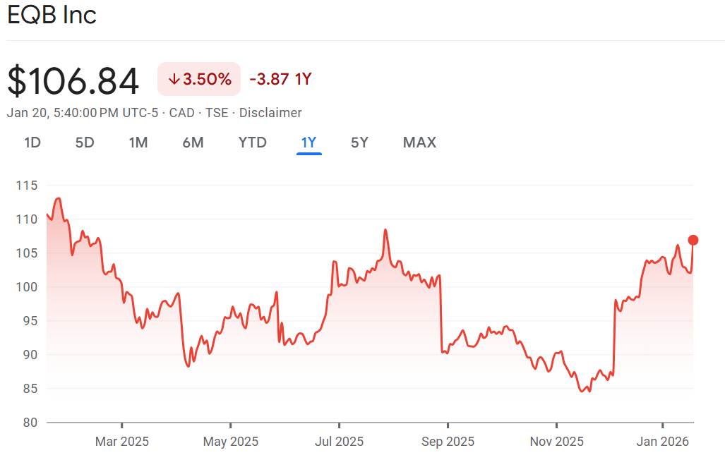 - Buybacks tighten liquidity while reinforcing belief that EQB remains a unique opportunity for Canadian investors despite recent transformation and growth trajectory.