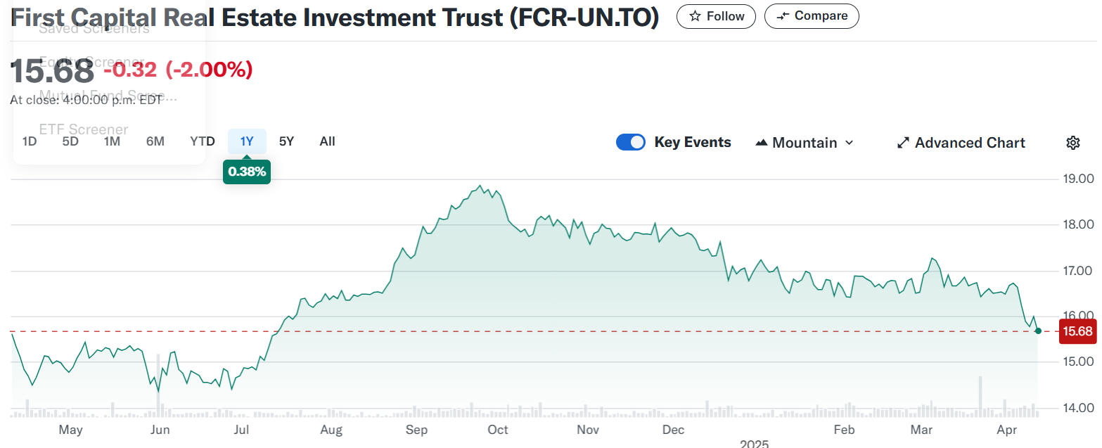 What It Does: First Capital REIT (FCR.UN) owns Canada’s premier portfolio of grocery-anchored retail properties in high-density, high-income urban areas. These assets are stable, resisting e-commerce disruption due to last-mile grocery needs.