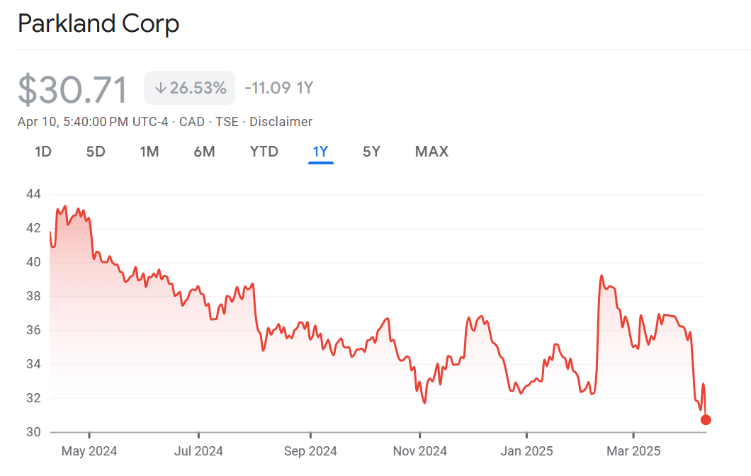 What It Does: Parkland (PKI) operates gas stations and convenience stores across Canada, likened to a “baby Couche-Tard” for its retail fuel model.