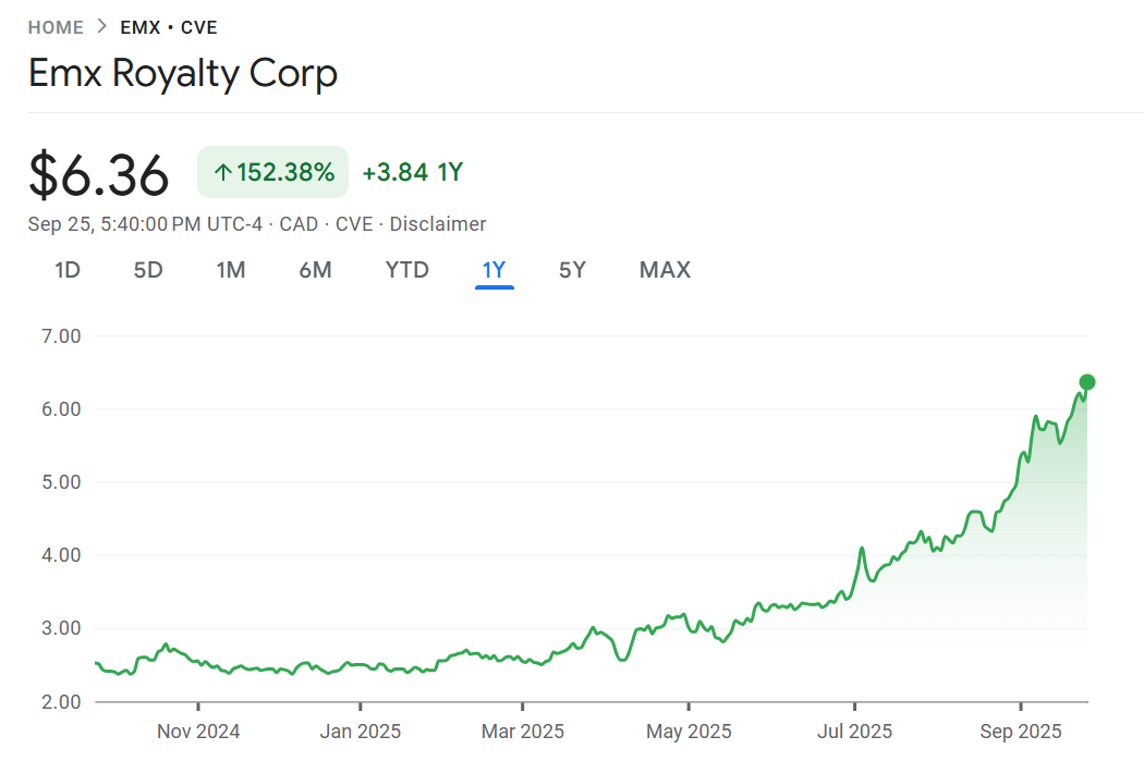 - Undervaluation Being Corrected: EMX was trading at a significant discount to its intrinsic value, which is now being arbitraged away. A merger with Elemental Royalties enhances its commercial acumen and access to London capital markets.
