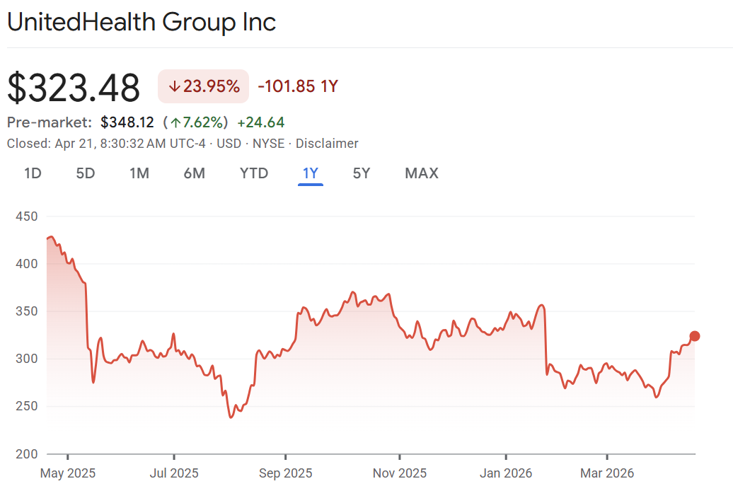 In recovery: UnitedHealth is surging 7% after profit beat expectations by the widest margin in five years and it boosted its profit forecast for the year. The embattled health insurer cut its forecasts three times last year so the fact that it is increasing its outlook suggests the clouds may be parting. In short, the company had to deal with many issues including rising costs, higher usage and political scrutiny over its insurance practices following the assassination of its division CEO. Shares are down nearly 50% from their 2024 peak. This quarter, a measure of its medical costs came in at a two-year low. It also announced it would buy back $2 billion worth of stock. I own shares (Obviously…Broken healthcare stock? Sign me up!)