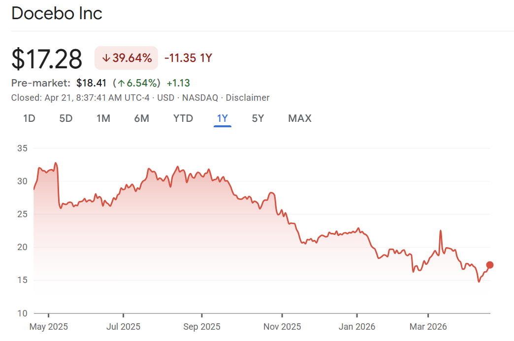 I will teach: Watch shares of Docebo which are pumping nearly 7% in the pre-market. The small cap Canadian software company has been pummeled over the past year but today released preliminary results and boosted its outlook for sales and profit. Rather than be disrupted by AI, the online learning platform, said demand for its AI-enabled workforce readiness platform. It’s a universally loved name on the street with mostly buy ratings trading at just 13x earnings. On the podcast, Robinson tells us another Canadian software play that is trading at half that which he says is a screaming buy.