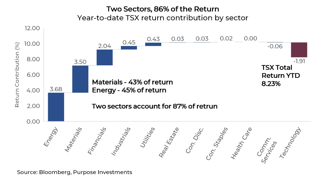 Bad breadth: Stock markets are in the red this morning following record highs for the S&P 500 and the NASDAQ. Weakness in tech, higher oil prices, and the continued closure of the Strait of Hormuz are all conspiring against the market today. If you want a tangible example of what high energy prices are doing, look at American Airlines this morning which warned the energy shock is driving up costs by $4 billion. It’s profit forecast ranges from a loss of 40 cents/share to a profit of $1.10/share. You could drive their whole fleet through that gap. The tech weakness this morning is driven by earnings (more on that below). Aside from that, the rally hasn’t been broad. Yesterday, more stocks fell on the S&P 500 than were up. Indeed, the equal-weight version of the S&P 500 is underperforming the market-weight version in April indicating narrow participation. The TSX has been hurt by weaker oil and gold prices in April. This is a problem because those two sectors account for 87% of the index’s outperformance so far in 2026, according to Derek Benedet of Purpose Investments. “Everything else is a rounding error, besides the drag of Technology. Considering how no one would have predicted energy’s dominance this year, we’d classify the Canadian market as the accidental bull,” he wrote in a piece a few days ago.