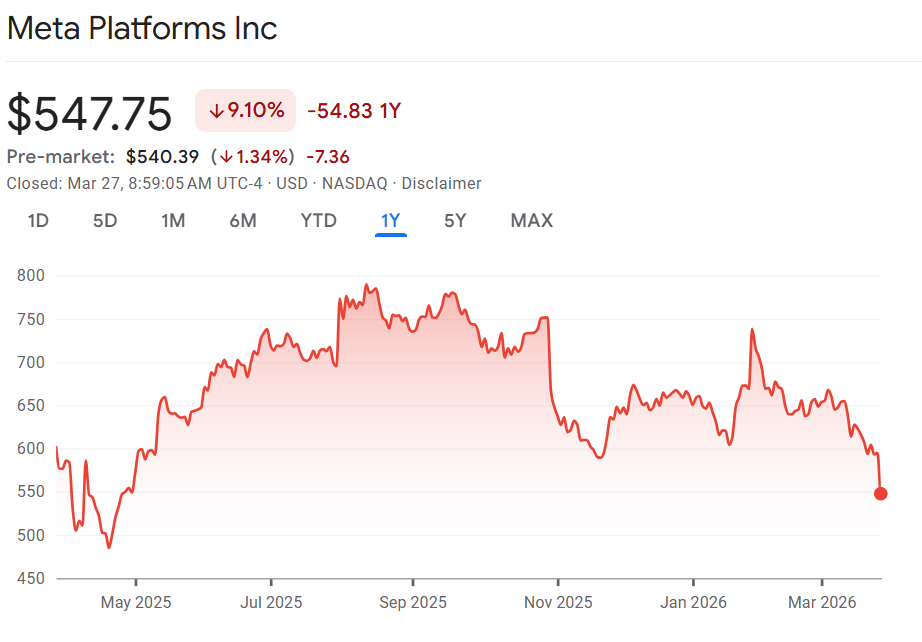 Big Tobacco Moment: This has been an ugly week for Meta investors with the stock dropping 8% yesterday to trade at an 11-month low. This comes after a landmark verdict this week in which social media companies Meta and Google were found liable for mental health issues by designing addictive social media platforms. There are thousands more lawsuits similar to this one. While Meta and Google both plan to appeal the decision, it is stoking fears that Meta will have to change the platform so it is less addictive and thus less attractive to advertisers because it leads to less engagement. The lawsuit is roiling investors because Meta and Google enjoyed protections from scrutiny due to the fact they weren’t liable for any content posted on their platforms. However, this lawsuit took the approach of saying the very design of these platforms were addictive and caused the problem. “The persistent question we have gotten from investors over the last 24 hours is — Is this META’s Big Tobacco moment? In other words, is META un-investible today?,” wrote Evercore’s Mark Mahaney, “It’s possible, but we think unlikely…First, our best estimate is that 8-13 year old users likely account for a MSD% of META’s global 3.6B Daily Average Users. Second, it’s key to note that Facebook and Instagram policies do not allow users under 13. Third, questions about META’s impact on children are not new to investors. This has been a topic for several years now. Fourth, arguably unlike Big Tobacco, Social Media provides a variety of positive social benefits as a communication, entertainment, information, and connectivity tool. And fifth, with today’s correction, META is trading at a 16X P/E multiple, within 10% of its three year trough multiple.”