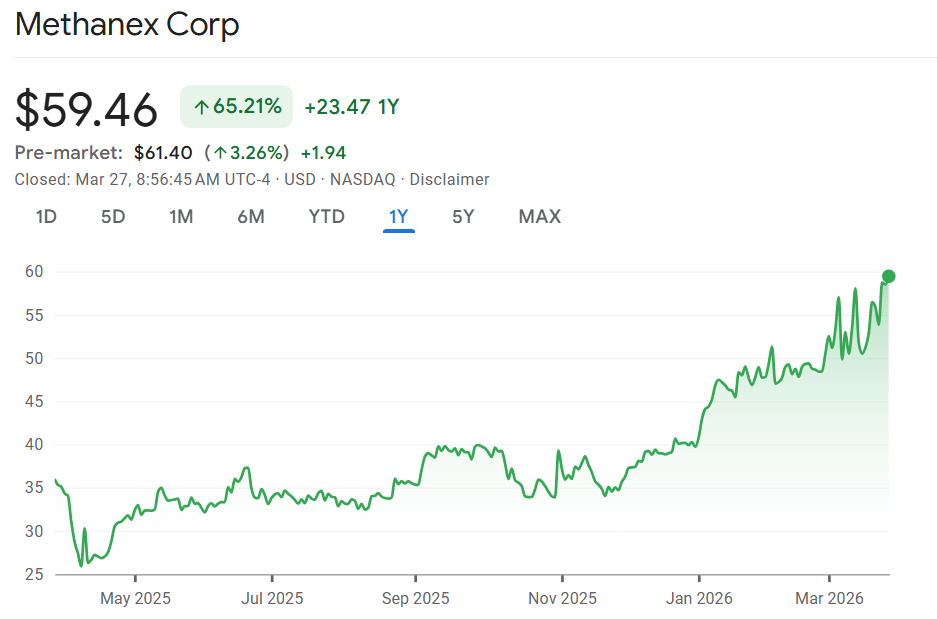 The price of war: Methanex could get a boost after the reference price for methanol shot up for April due to supply disruptions in Iran. Prices in North America will increase 33% and double in Asia Pacific. “Although the duration of the Iranian war and elevated methanol prices are uncertain, we believe the April posted prices could lead to incremental free cash flow of ~$93 million ($1.20/share) per month,” wrote RBC’s Nelson Ng.