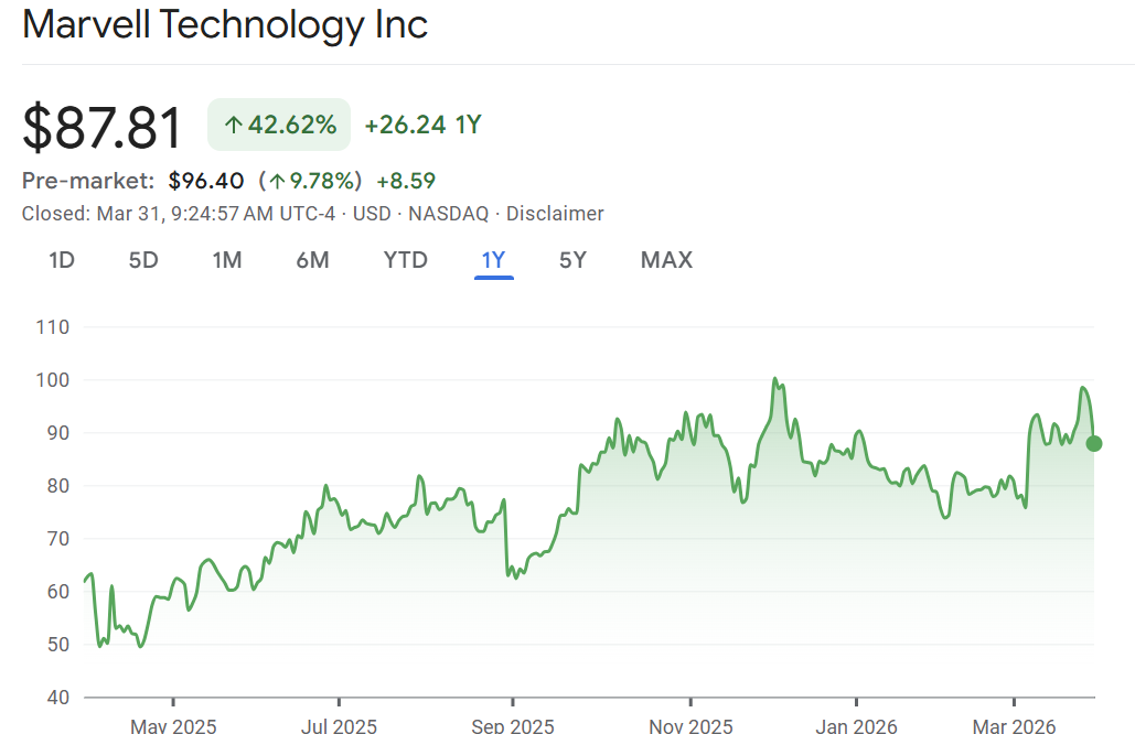 Cashing in the chips: Marvell is surging 9% in the pre-market after announcing a $2 billion investment from Nvidia. The deal aims to connect Marvell’s AI networking chips to Nvidia’s AI Factory. Nvidia makes ready-to-use AI chips whereas Marvell’s solution offers customization. They are often thought of as rivals but Nvidia’s stake in the company shows that both can work together in the AI race. The deal will allow customers to use components from both companies to develop customizable AI infrastructure. Win win.