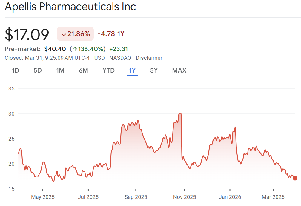 Drug deal: Biogen is buying Apellis Pharma in a deal valued at $5.6 billion in its one of its biggest acquisitions ever. The offer is $41 share which is 141% premium to where the stock closed yesterday. The deal gives Biogen access to two approved drugs, one that treats an immune disorder that leads to blindness and another that treats a blood disorder. Before this deal was announced, shares of Apellis had dropped 32% and were trading around an 8-month low. “The market punished (Apellis) because of competition in the multibillion $ Geographic Atrophy (GA) market for its drug Syfovre (the immune disorder drug). But ignored the growth emerging in two rare disease indications, plus a late-stage pipeline in 2 others that will get to market over the next couple of years. Furthermore, it will turn profitable by 4Q this year,” said Eden Rahim of NextEdge in an email to me this morning, “The significant +140% premium is a reminder of how consistently the market undervalues or mis-values biotech companies vs what their worth is to another biotech company…” Rahim named many takeout candidates when he was on the podcast, check it out!
